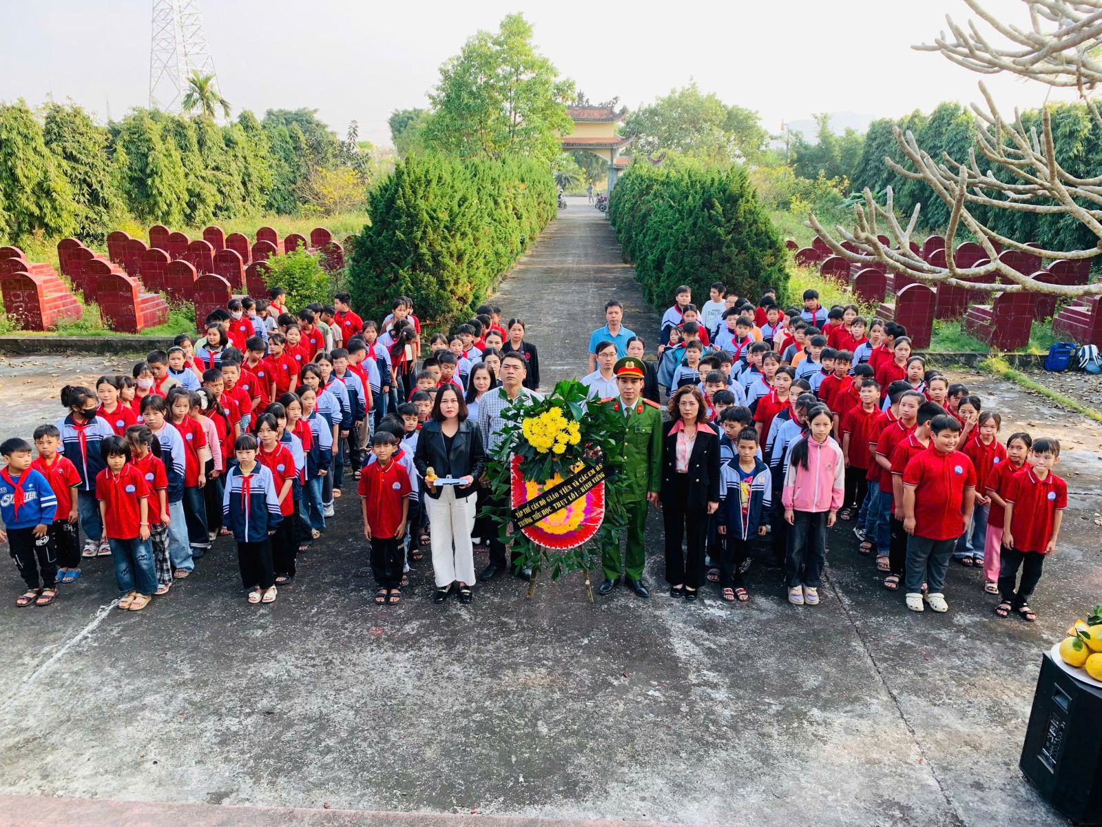 Nhân dịp ngày thành lập quân đội nhân dân Việt Nam, ngày Quốc phòng toàn dân 22/12, liên đội trường Thụy Lôi tổ chức cho CB-GV và các con học sinh đi dâng hương, chăm sóc Nghĩa trang liệt sĩ TDP Gốm phường Tam Chúc. Hoạt động này không chỉ là một việc làm mang ý nghĩa nhân văn sâu sắc mà còn là bài học giáo dục truyền thống “Uống nước nhớ nguồn”, “Đền ơn đáp nghĩa”. Giáo dục cho các thầy cô giáo và các em học sinh lòng biết ơn để nhắc nhở tất cả chúng ta luôn sống có bổn phận, trách nhiệm với chính bản thân mình và trách nhiệm với xã hội, để xứng đáng với sự hy sinh cao cả của các anh hùng liệt sĩ. Qua việc dâng hương, quét dọn, chăm sóc các phần mộ các em học sinh sẽ hiểu rằng: Có được cuộc sống yên bình, hạnh phúc như ngày hôm nay đã được đánh đổi bằng xương, bằng máu của biết bao thế hệ cha anh đi trước.